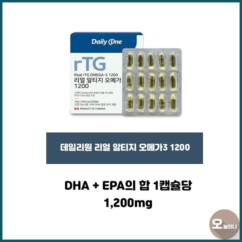 또 데일리원 리얼 알티지 오메가3 1200과 함량은 같지만 가격 부분에서 리얼 알티지가 24,000원대 2개월 분량인 반면, 해당 캐나다 프리미엄 울트라 오메가3 1300은 23,000원대 가격으로 6개월 분량이 들어있어 추천드리고 싶네요.
